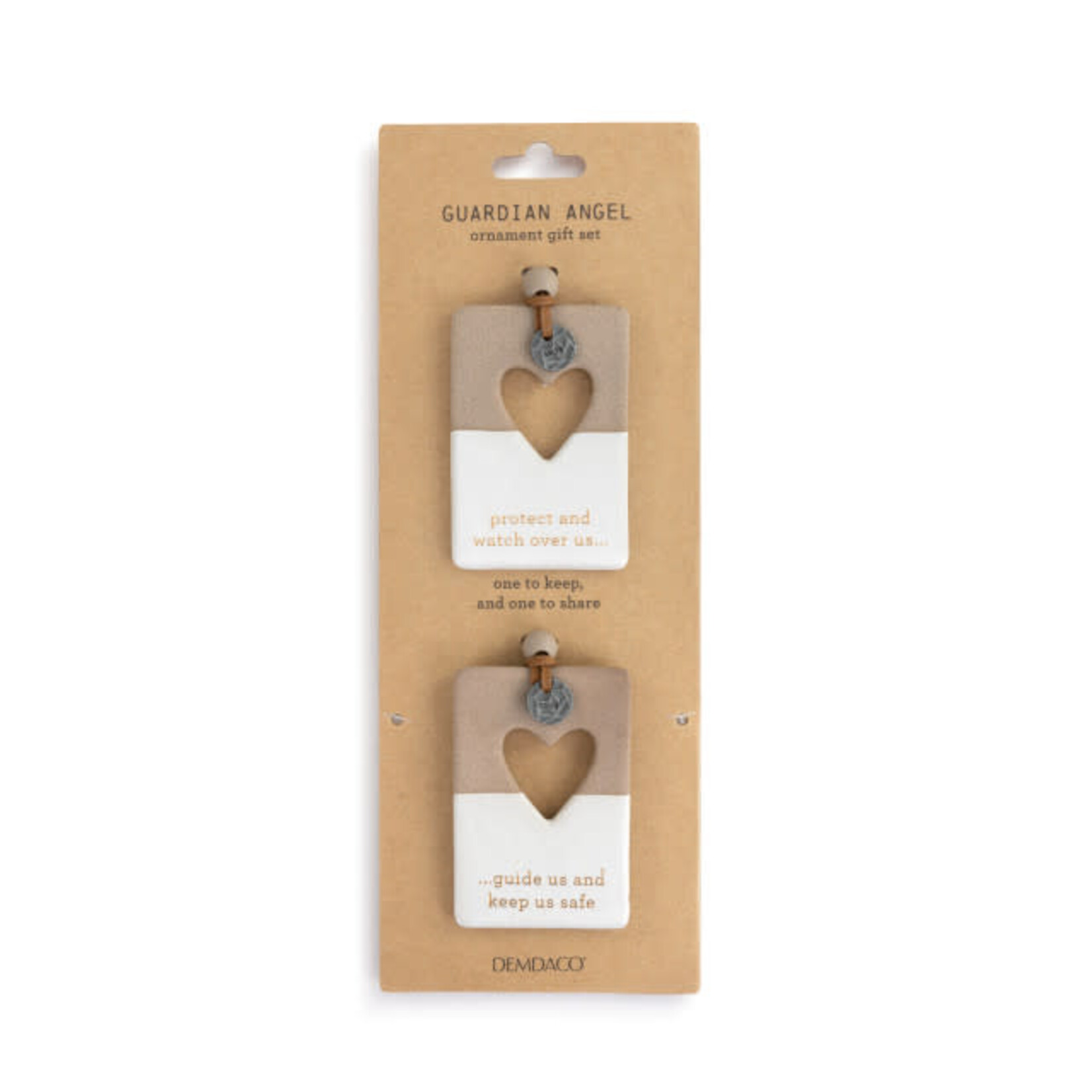 Stay connected by sharing this stoneware Guardian Angel: Keep & Share Ornaments set with someone you care about.